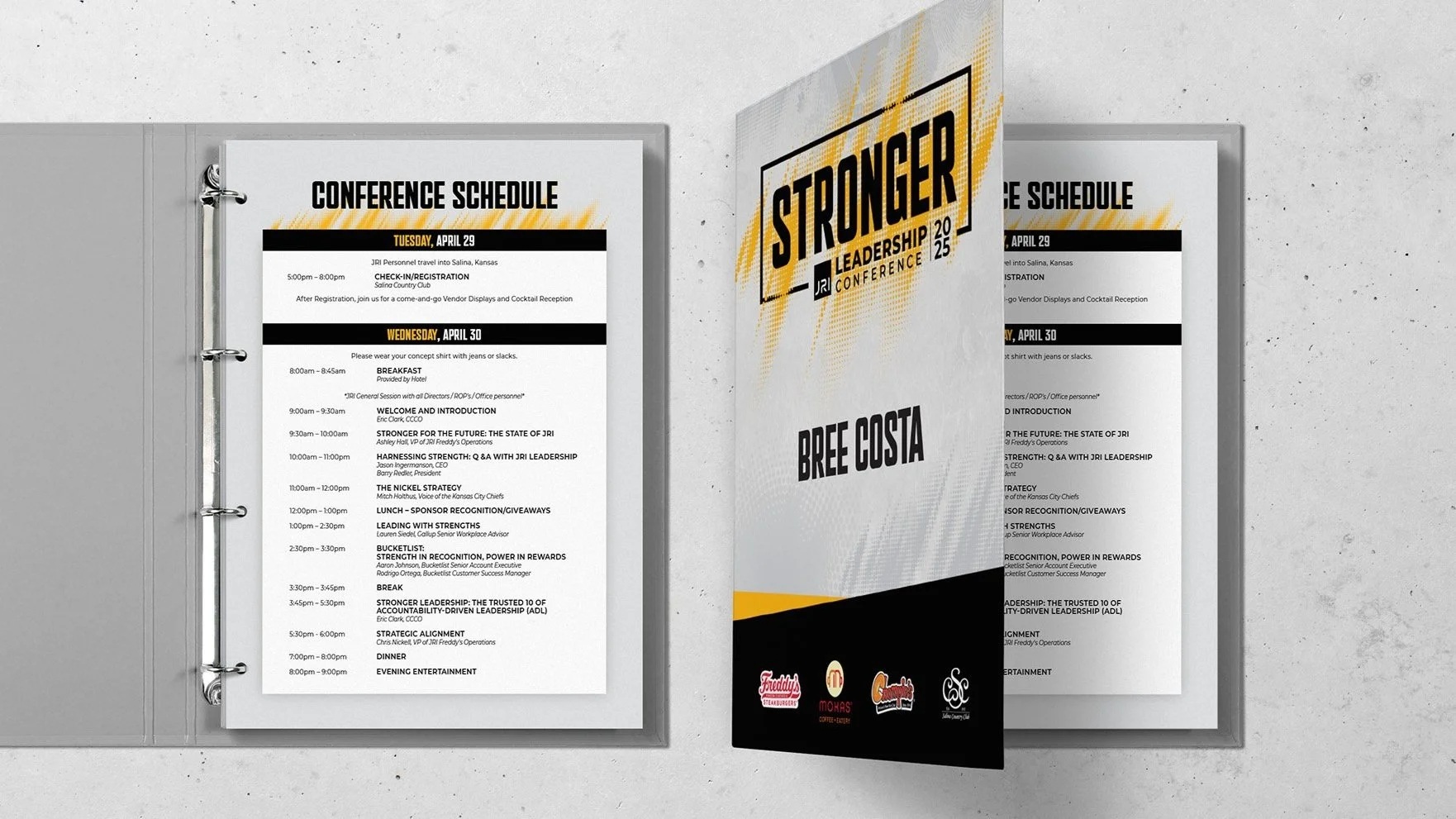 Created a dual-logo system: an evergreen “JRI Leadership Conference” mark and a bold, textured theme logo for Stronger that encompasses it